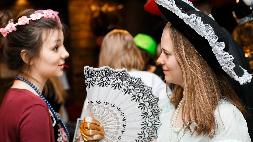 К базовым атрибутам каждый участник получит дополнительный реквизит для своего героя — например, накидки, перчатки и веера для светских дам, подтяжки, галстуки и шейные платки для джентльменов. Это создает ошеломляющий эффект погружения в мир игры, словно все происходит на самом деле.