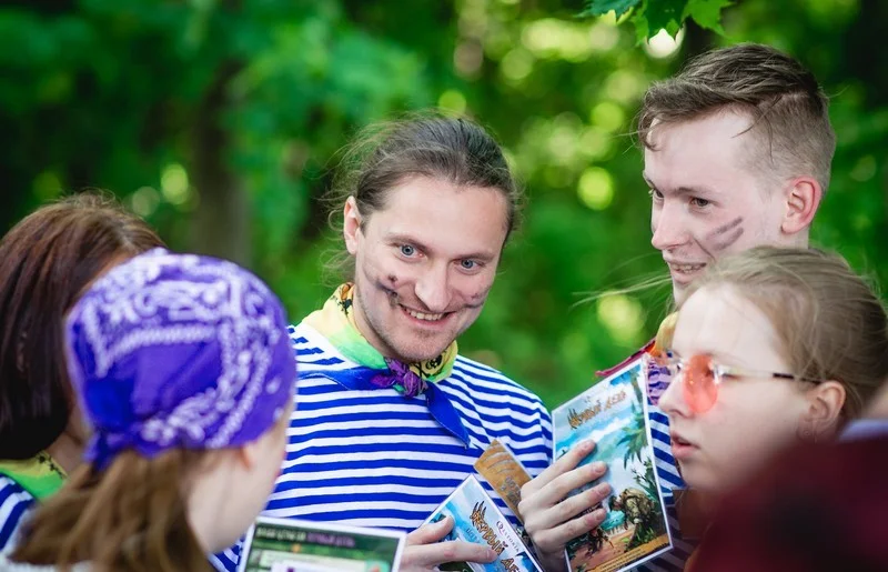 Квесты на природе — это праздник для взрослых, детей или подростков. Игроки взаимодействуют не с предметами, как в квест-комнате, а друг с другом. К вам на пикник приедет ведущий с игрой и реквизитом, и гости на пару часов перевоплотятся. Например, в пиратов.