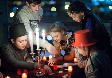 Все подозреваемые, детектив Майлз, а также некоторые заинтересованные лица приглашены на спиритический сеанс в салон Пуатье...