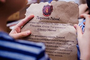 Квест «Школа магии» в лагере: Ученики факультетов огня и воды празднуют победу над злым волшебником. Теперь они объединились и замыслили создать самую зажигательную магическую шоу-команду!